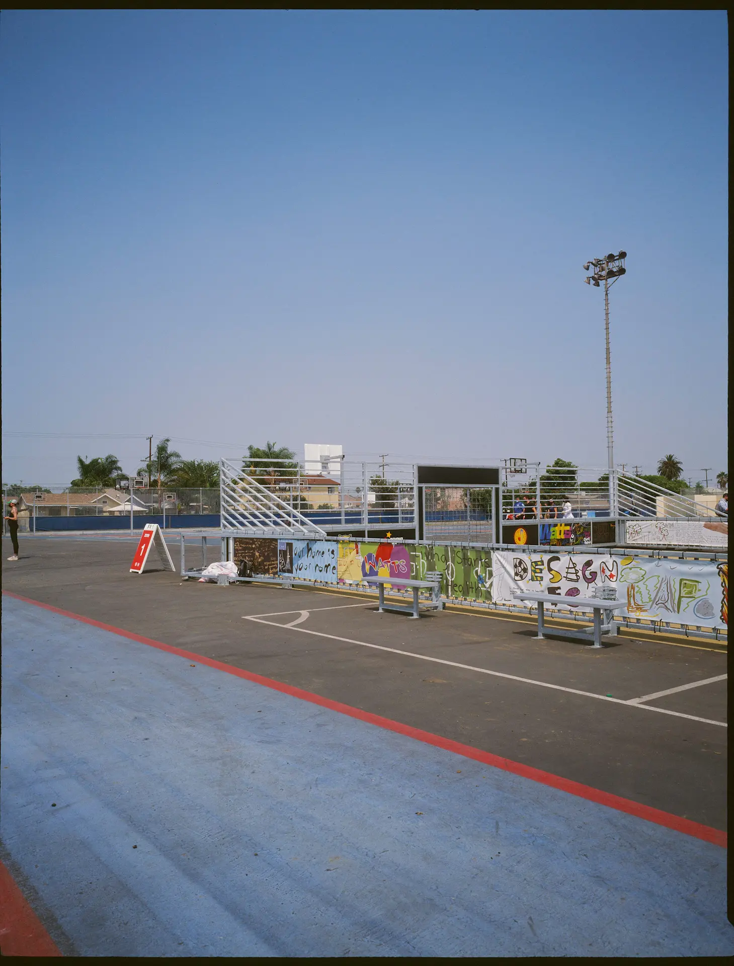 On July 2nd, 2021 Design FC held a design workshop at LAFC’s Banc of California Stadium, in which 26 students (3rd - 12th grade) from various schools in Watts (CA) designed over 200 linear feet of art that will be permanently displayed on the windscreens of the new mini pitch built for MLS All Star 2021.